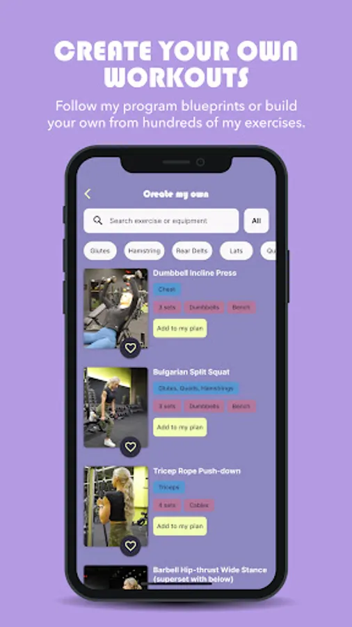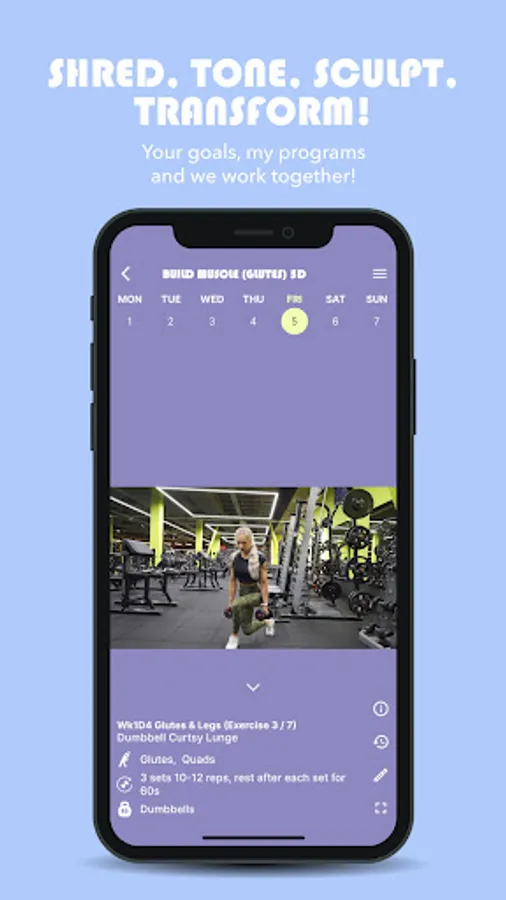 I take you through each exercise with a video and instructions on how to perform the exercise, the desired reps/weights and rest. Record you reps/weights in the app – no more need for paper and a pen to track your progress! Each week builds on the previous week, allowing you to hit your goals.