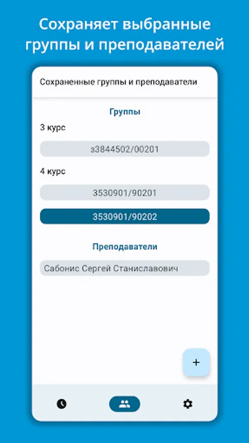 The application allows the user to save groups and teachers to make switching between them even more convenient.