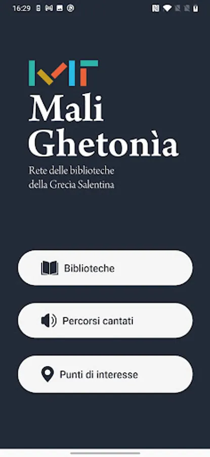 With the MaliGhetonìa app you will receive up-to-date information on points of interest and initiatives proposed by the municipalities that are part of the Grecìa Salentina. Furthermore, you will always have at your fingertips the services offered by the Network of Libraries of Greece and, in particular, those already offered by the Bibliando service of the province of Lecce.