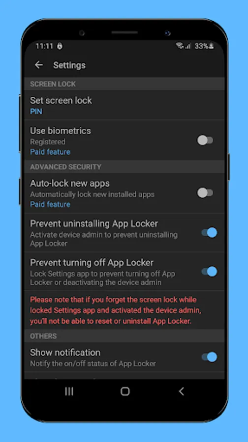 - Prevent uninstalling App Locker by activating its device admin