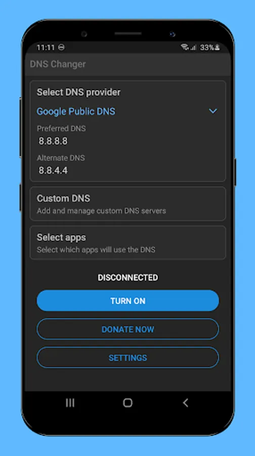 DNS Changer allows you to change DNS servers to get better Internet connection for both Wi-Fi and Mobile data networks without root requirement.
