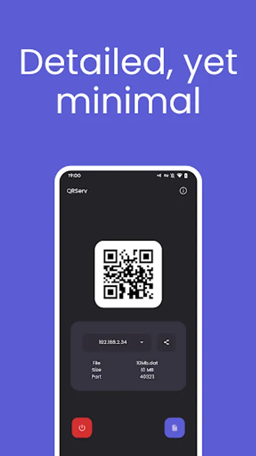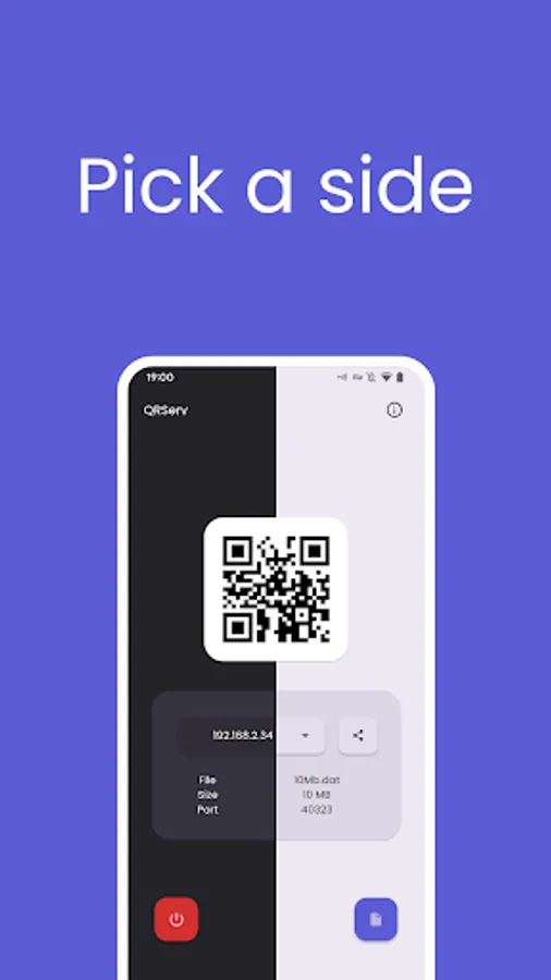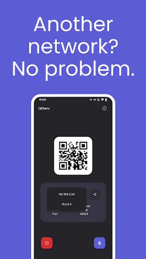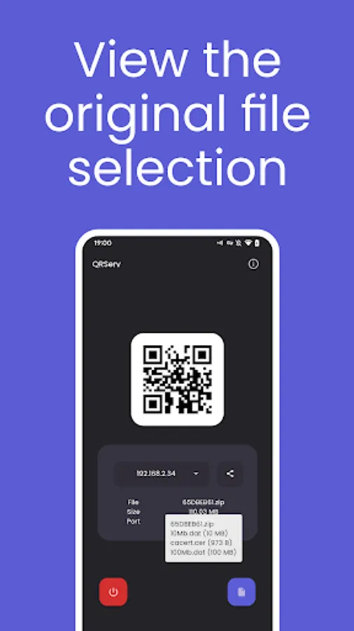 QRServ takes any selected files on your device and makes them available through its own HTTP server at an unused port number. The selected files can then be downloaded via web browser on another device and/or software that allows file downloads over HTTP from QR codes.