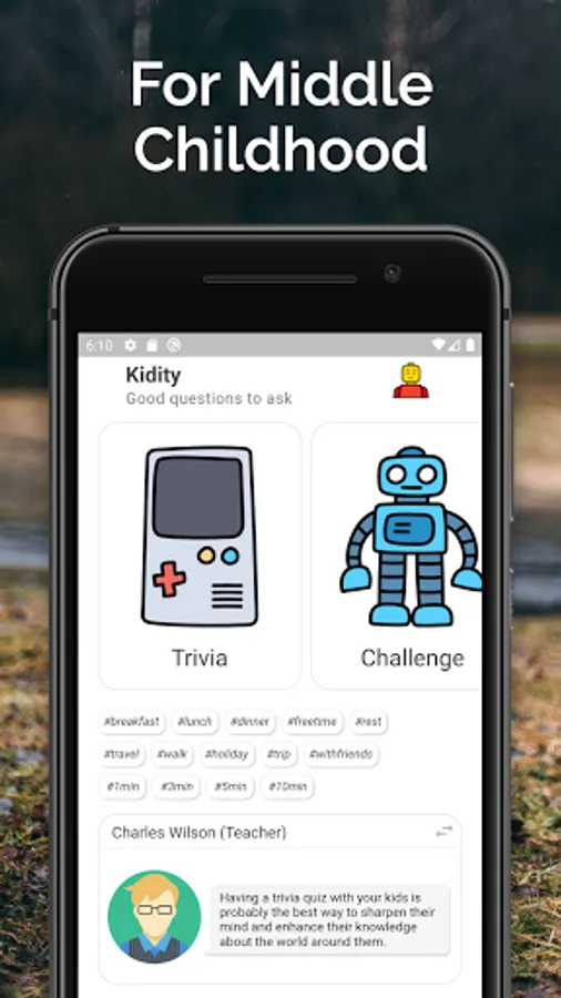 - The Kidity app is with you on your long journeys. You can organize competitions with your children by searching for answers to trivia questions.