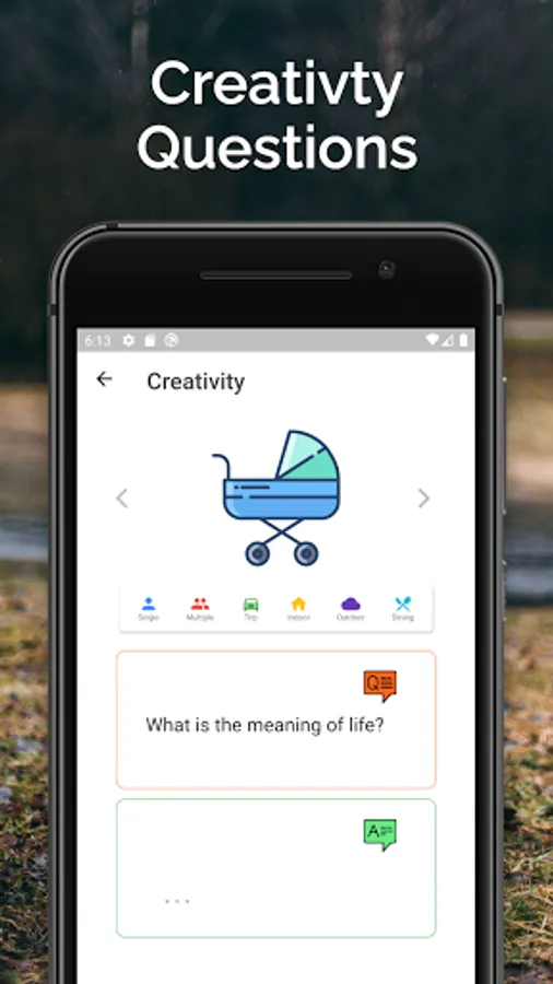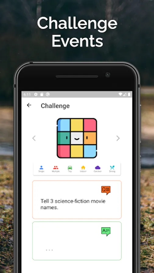 Kidity App, in 6 main categories, more than 2000 events, questions, activities, challenges, etc. contains. We have planned it to accompany you in your free time, travels, dinner conversations, etc. with your children.
