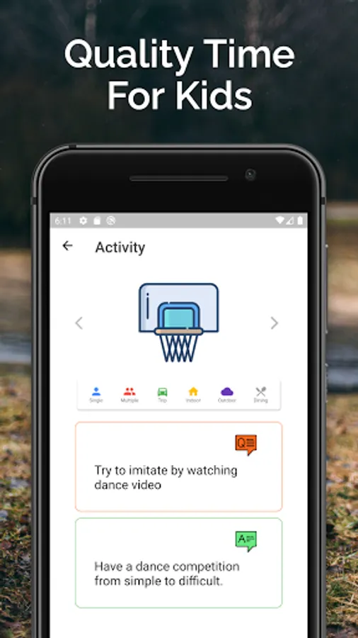 - The Kidity app is with you outside, too. Games and activities that they can play with their friends are right at your fingertips.