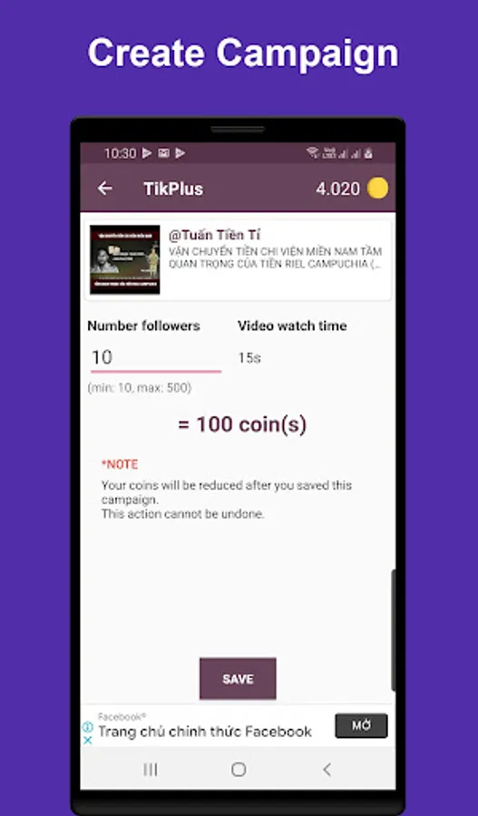 - Create campaign for your video