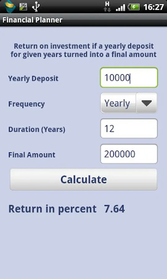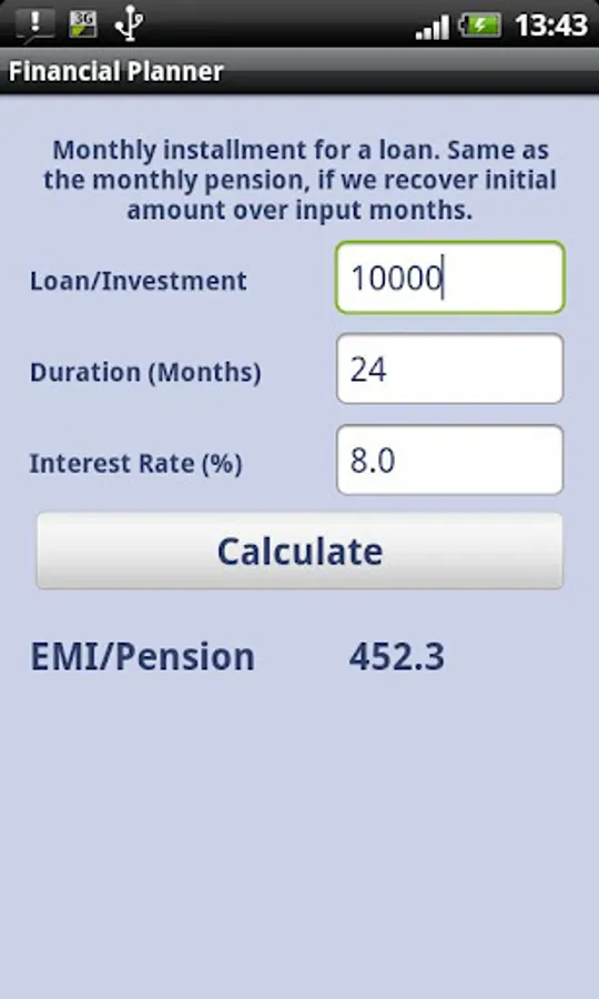 Financial planning made easy with ROI (Return On Investment)/Mortgage/Pension/Loan calculators. Following calculators are currently available: