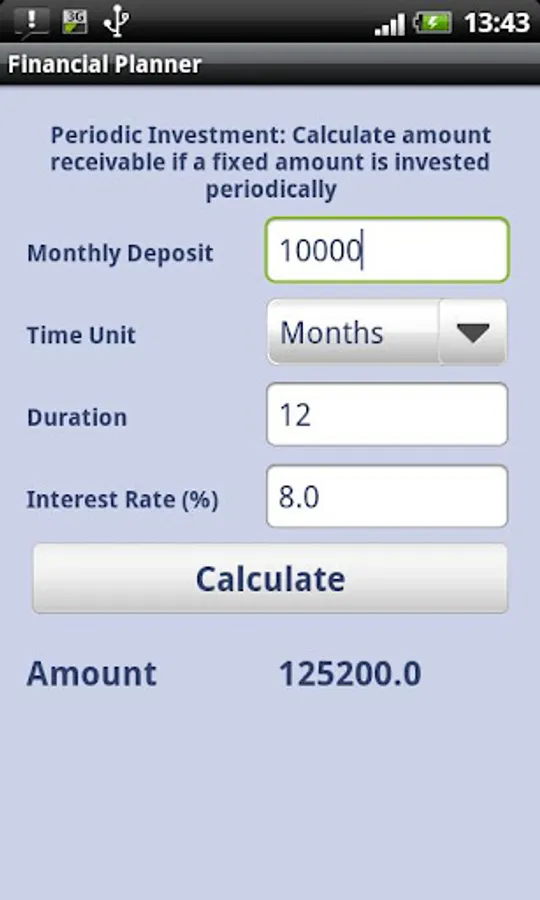• Calculate how much your periodic investment will be worth in given number of months or years