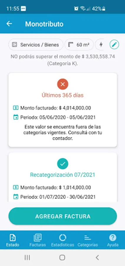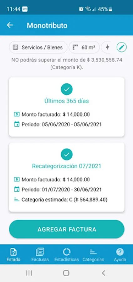 Replace the widely used Excel spreadsheets. In tributAR you will have all the updated values of each category. Check the annual accumulated billing day by day and the estimated category for the next recategorization.