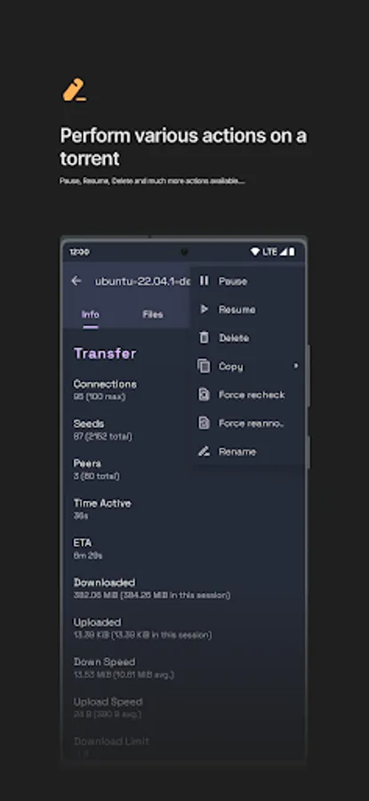 ✅ Performing various actions (rename, recheck, etc.) on a specific torrent
