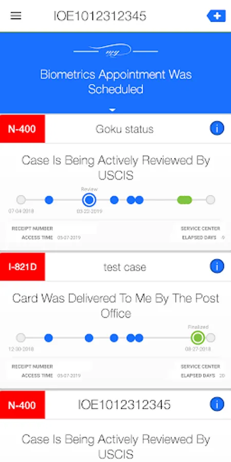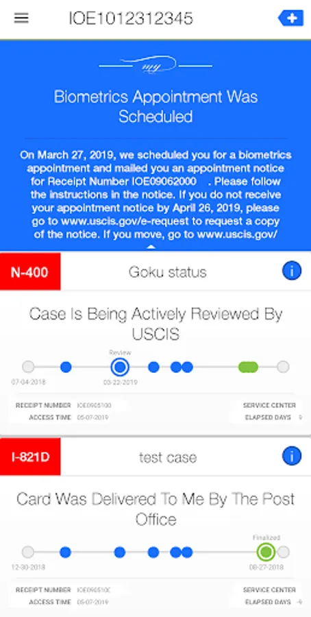 Track USCIS cases using an intuitive interface which allows the user to quickly explorer nearby cases and be notified as to whether a case has been updated. Cases are presented within an intuitive Timeline View where machine learning algorithms attempt to classify incoming case status and predict when a final decision will be made.