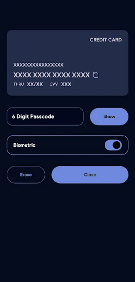• Access your cards using a passcode for added protection.