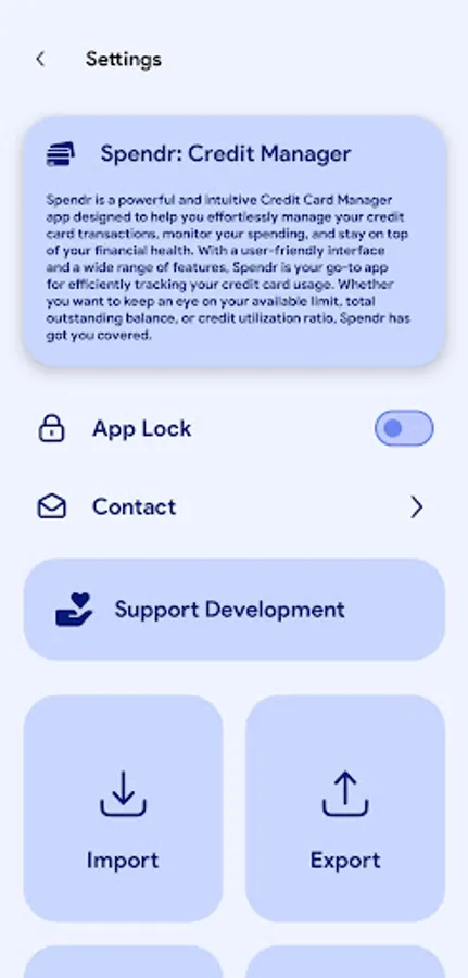 • Spendr prioritizes privacy and doesn't require any permissions or internet access.