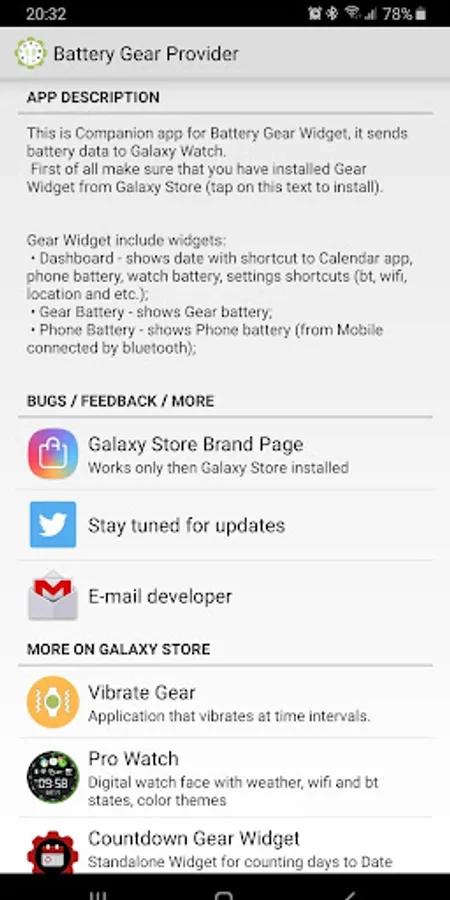 This Application is a battery data provider for tizen watch app "Battery Gear Widget", it need to be installed for proper work of widget.