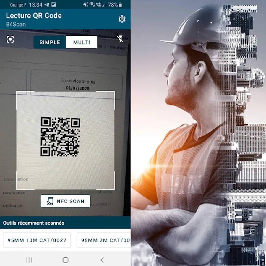 B4Scan allows you to quickly identify professional equipment and tools using QR Code or NFS traceability. A scan of the QR Code label or the NFC chip affixed to a tool indicates the status of the periodic check at a given time.