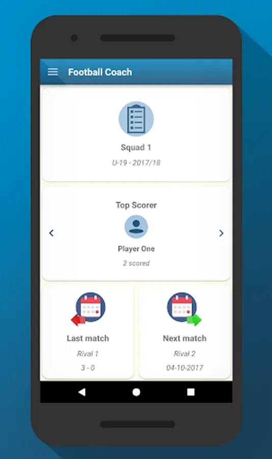 Football Coach is NOT a game, is a tool to help you with the management of your football teams. App contains creation and management of different squads, players, matches, trainings and functions of your team.