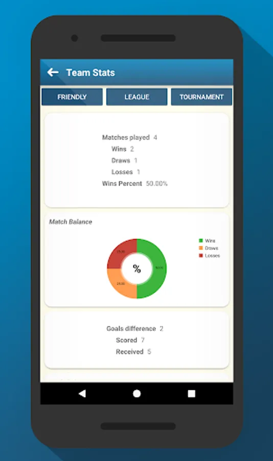 Also, you will be able to keep track of your team stats. Some like previous matches will be represented with graphs in order to give user a better visual experience.