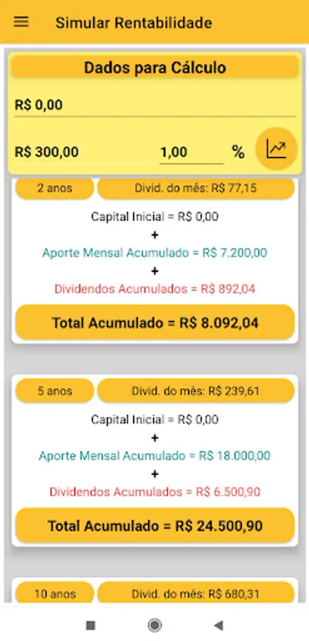 - The app simulates a monthly investment in a compound interest application over 30 years. With this, he shows how this investment, over time, becomes his "snowball" that yields monthly.