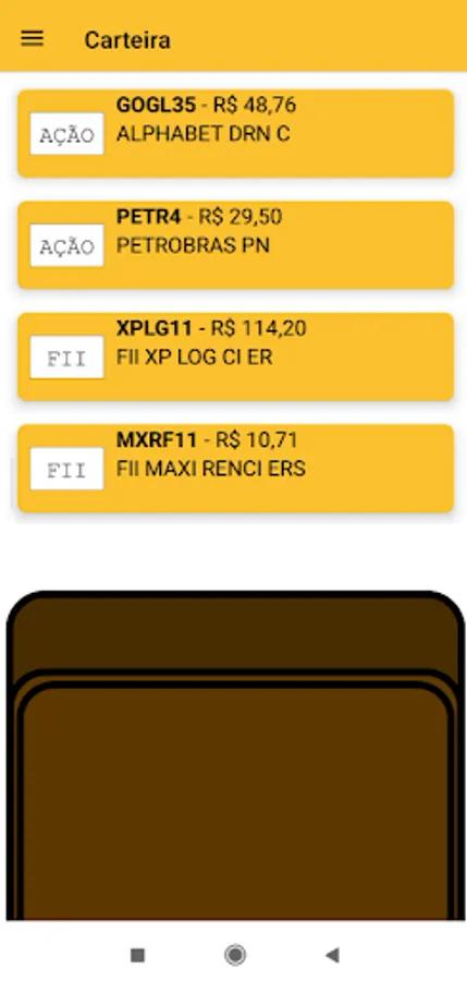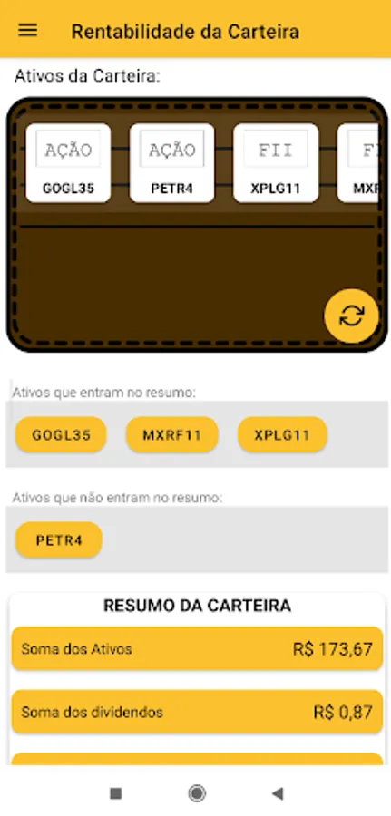 - The app also has a search tool for Brazilian stock exchange assets and a portfolio where you can add searched assets. In this way, it is possible to check the amount of dividends that your portfolio earns monthly, what percentage of this amount is compared to the value of the portfolio, the average dividend and much more.