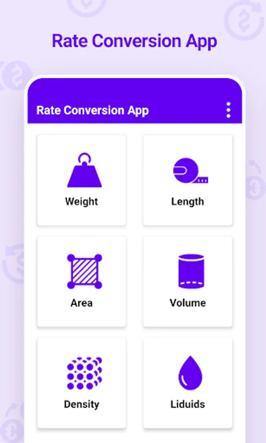 Rate conversion app is very simple app where user can convert rate of any unit to another units for example user know about one foot price but don’t know the price of same material in meter, so this app will help user to convert such type of rate and price conversion.
