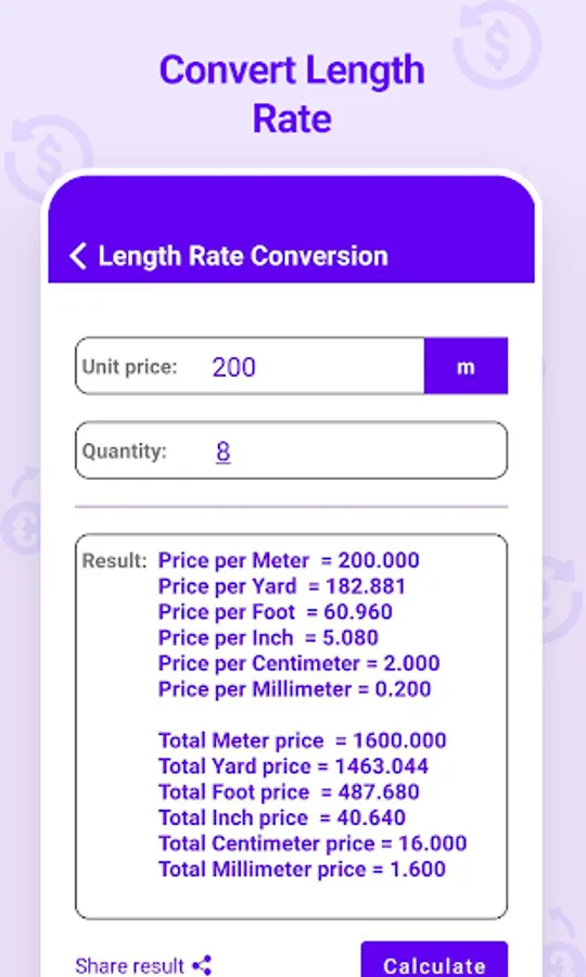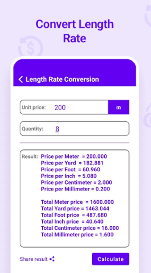 • Covert rate of length (meter, yard, foot, inch, centimeter, millimeter)