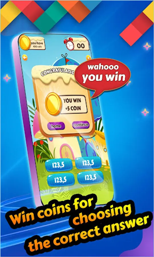 Once you click on the desired mode, a new screen will appear with math questions along with four suitable options of answer. Among the four options of answer, there is a correct answer to one of them. If the user clicks on the correct answer, he/she will win 5 coins. But if he clicks on the wrong option, 5 coins will be deducted from his coin collection. There is a limited time to answer the questions and if you are unable to answer the question, 5 coins are deducted from your coins collection.