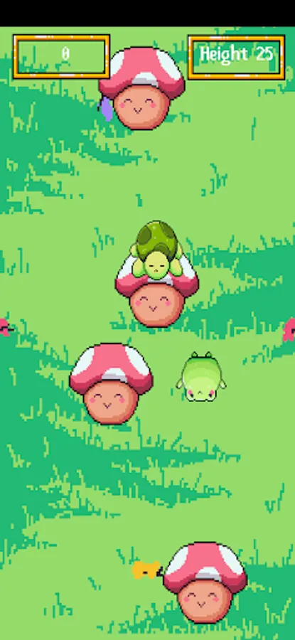 Kawaii Froggy Jump is a platform jumping game. You play a cute little froggy who jumps from mushroom to mushroom, collecting flies, and shooting snapping turtles.