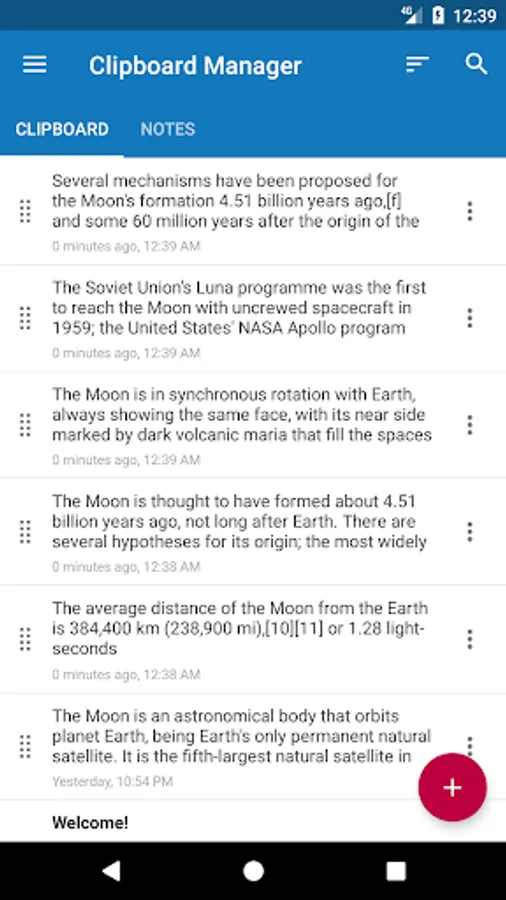 * Copy and paste unlimited notes.