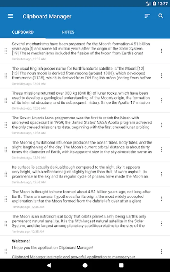 Clipboard Manager is simple and powerful application to manage your clipboard, keep history, fast access to your notes in history, etc.
