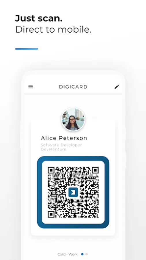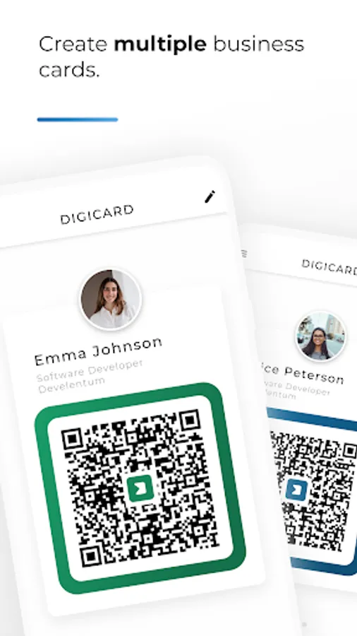 DigiCard offers you a fast and modern solution for creating and exchanging your digital business cards. Take advantage of the QR code feature that allows anyone to instantly scan your business card with any smartphone. Create professional business cards in seconds and impress your contacts with a contemporary and stylish appearance. Showcase yourself with a business card that reflects your professionalism and modernity.