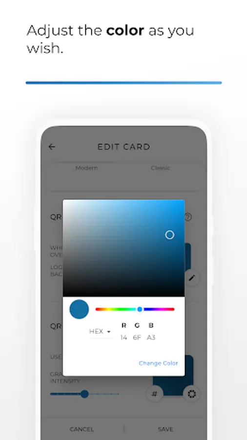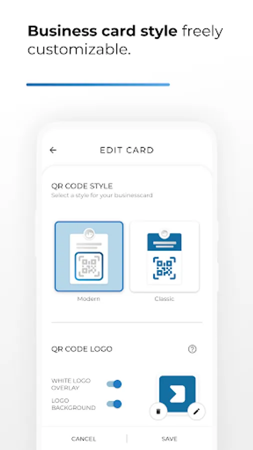 • Make a personal statement by adding a profile picture and company logo on the QR code.