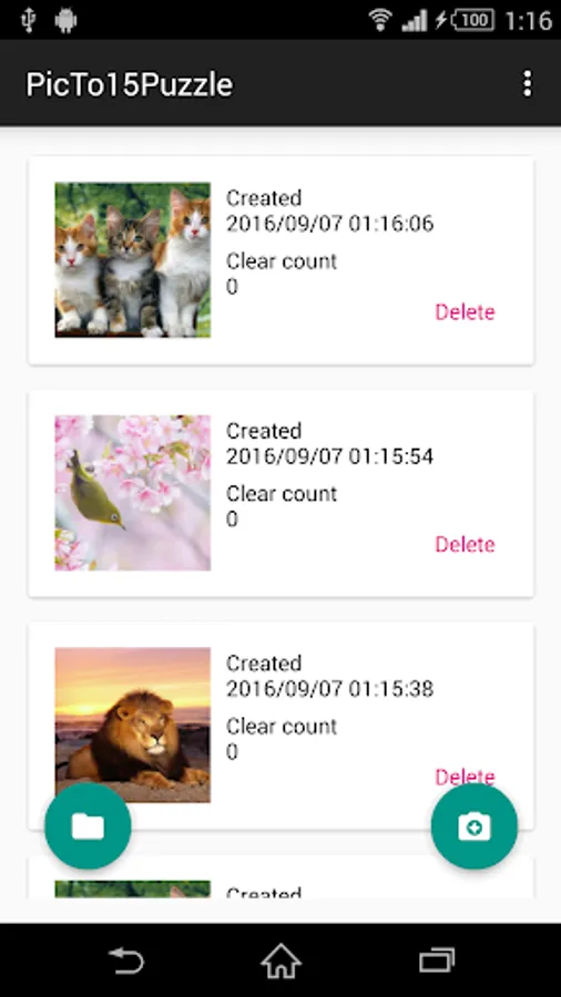 Once 15 puzzle that was created is stored in the app, you can play at any time later.