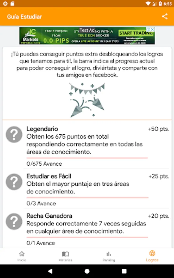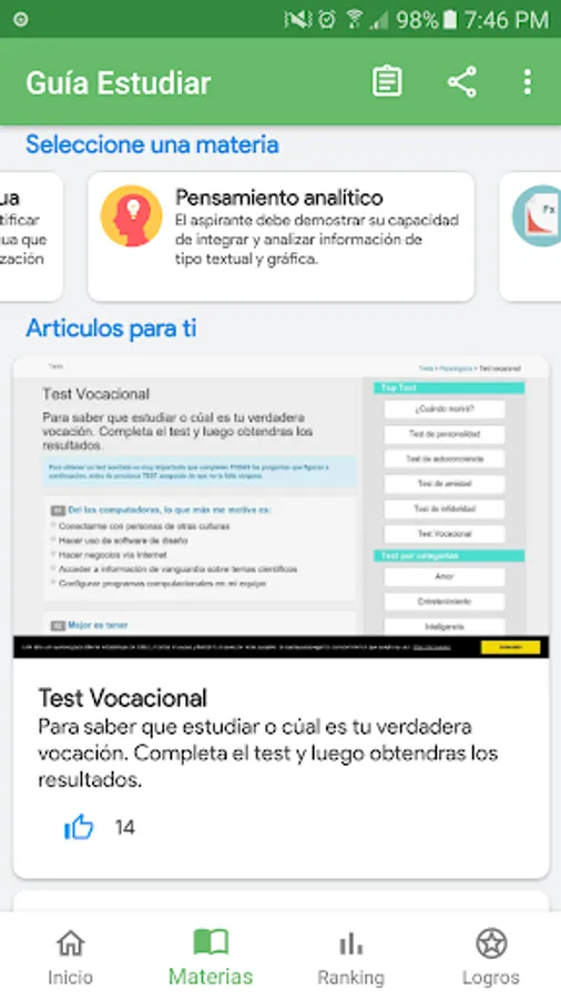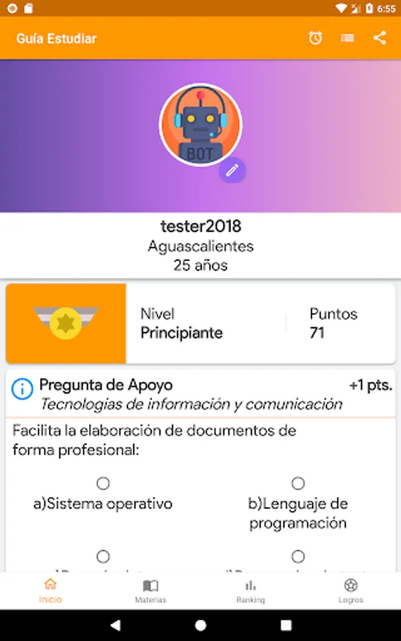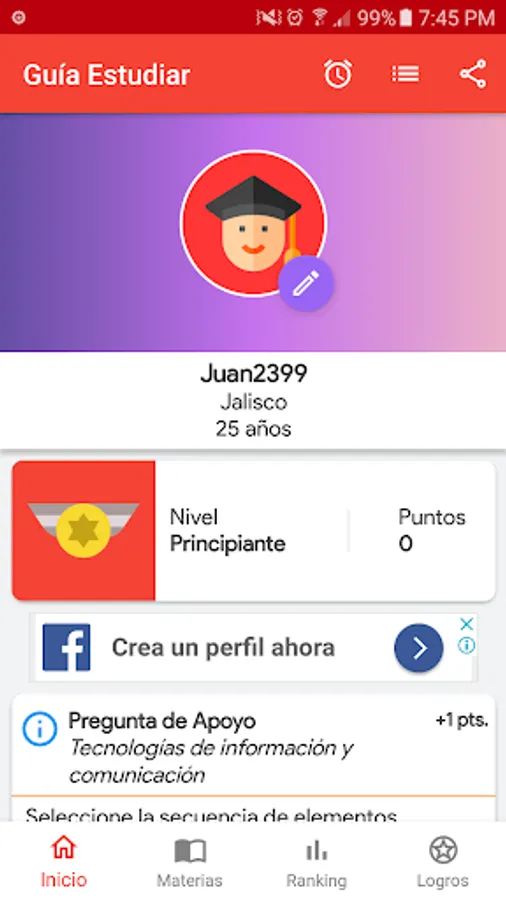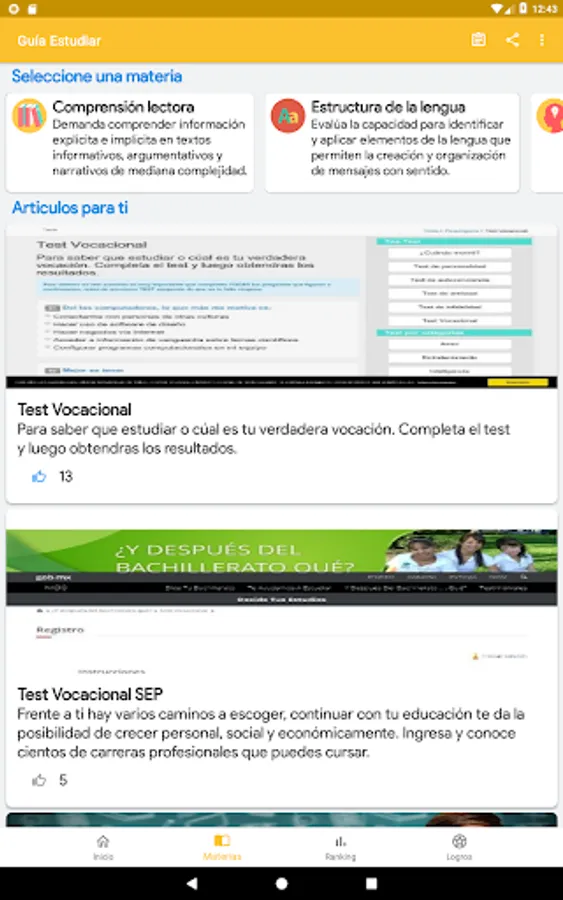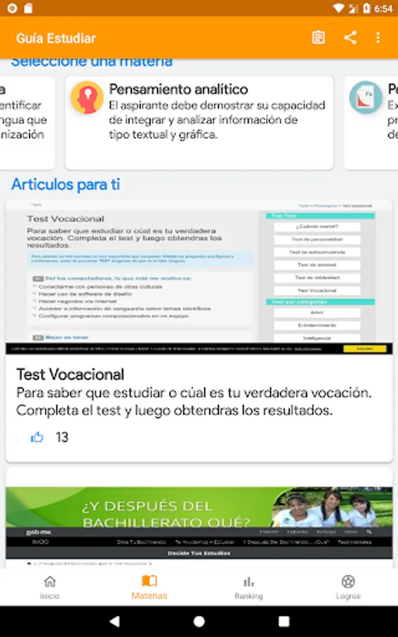 Study guide or Tics Guide is an application that aims to change the traditional way of study, the application will help you prepare academically for your entrance exam to enter college, study topics are based on the content of the propaedeutic guide CENEVAL.