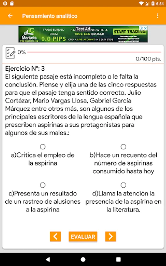 Learn and have fun studying anytime and anywhere, it is not necessary to have an Internet connection. Achieved the maximum score for each subject, just choose the answer and press to evaluate, repeated the themes often you want it, after evaluation, know what is the correct response and why, allowing reinforce learning.