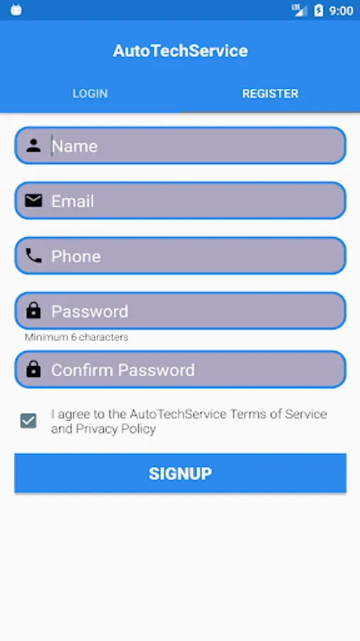 Create an account in Auto Tech Service.