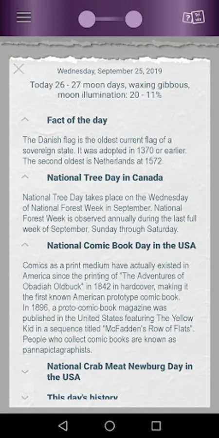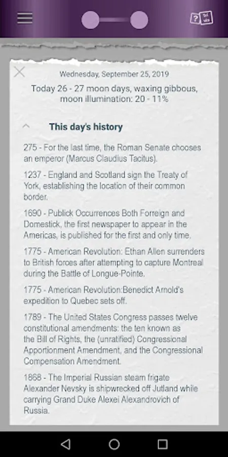 Find out what holidays are today, what interesting events took place on this day in previous years, and play an exciting historical game (trivia) - this and much more is available in our application.