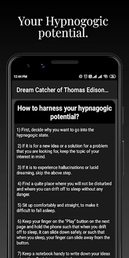 If you fall into sleep, the vibration and the alarm will go off, waking you up to write down the solutions or the ideas which flashed in your mind.