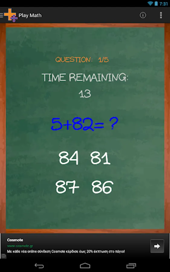 You can train your brain and exercise your mathematical skills by playing "Play Math".