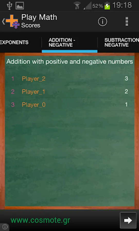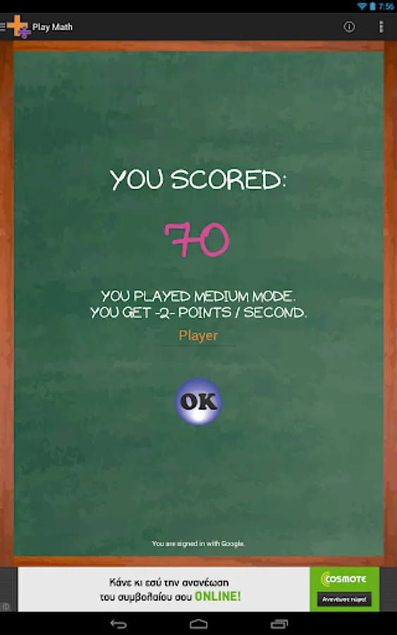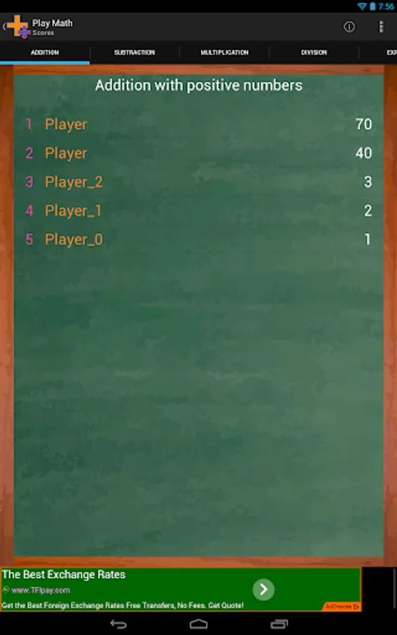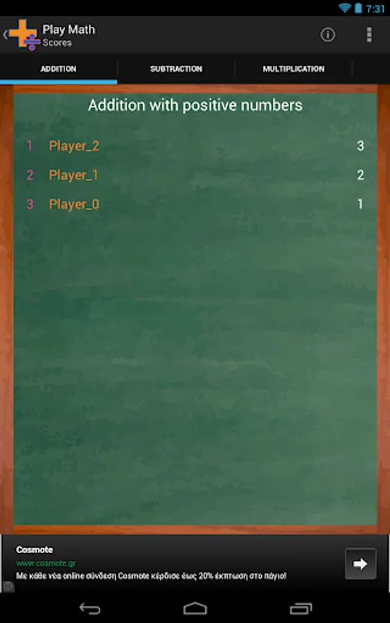 In addition to that, every time you play a game you can write your name and the score will be saved locally (in your mobile phone). Then pressing at "Local scores" you can see all your scores (top-10) at each operation separately!! So you can compete with your friends and your family !