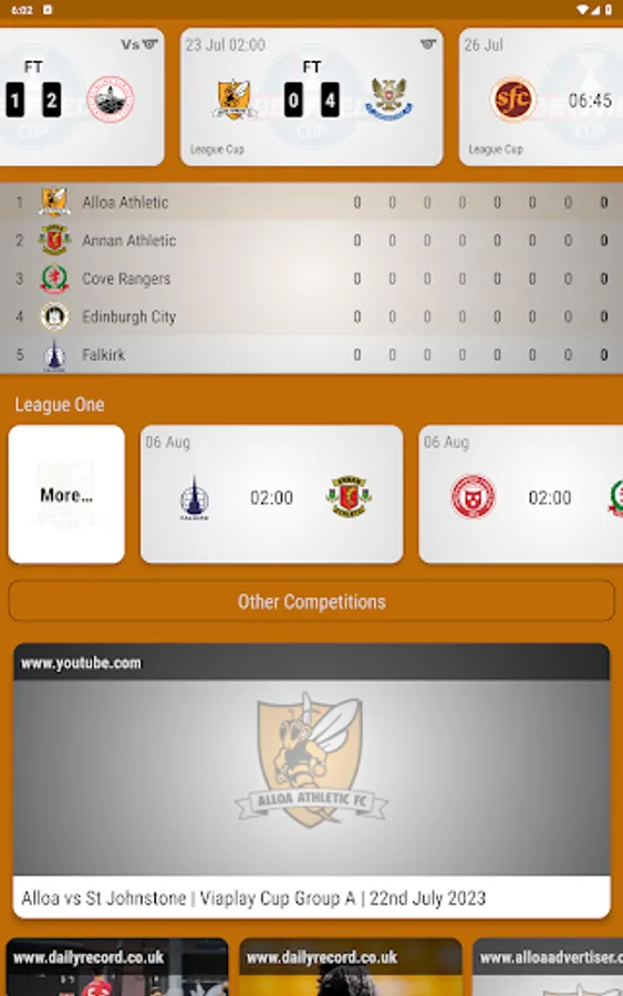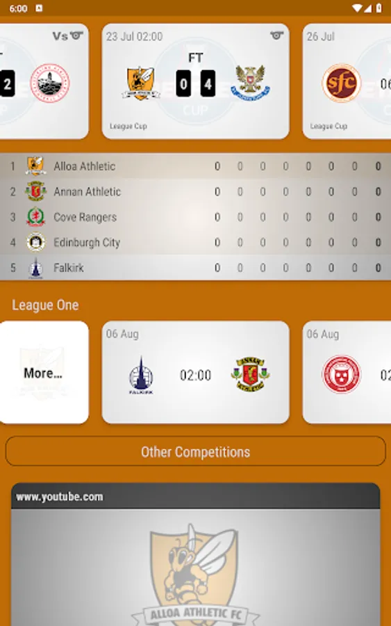 On match day there are regularly updating live scores from the Alloa Athletic match and across the country. With all the latest fixtures and league standings, you'll never need another football supporters app again!