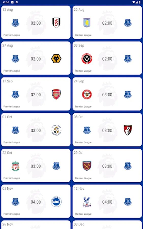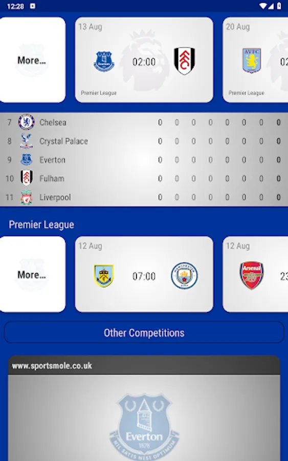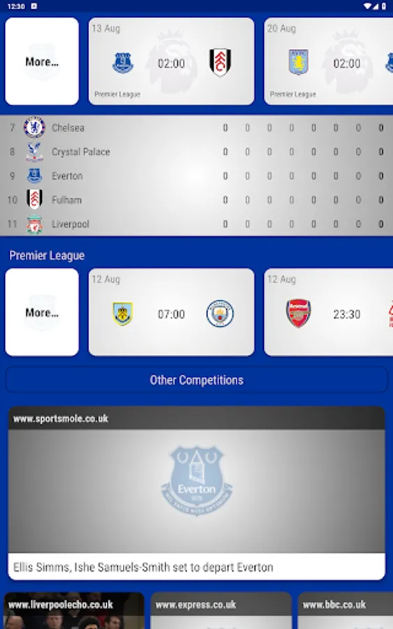 On match day there are regularly updating live scores from the Everton FC match and across the country. With all the latest fixtures and league standings, you'll never need another football supporters app again!