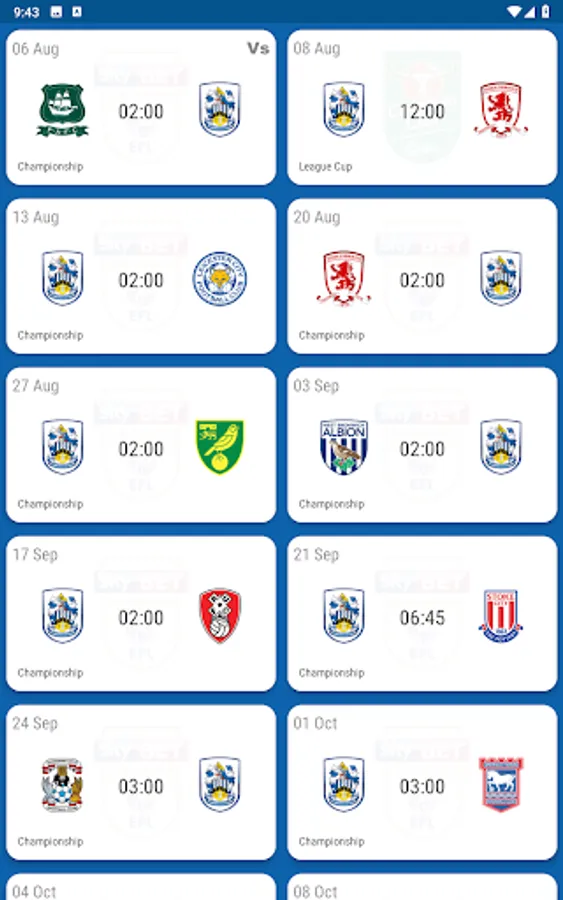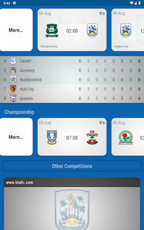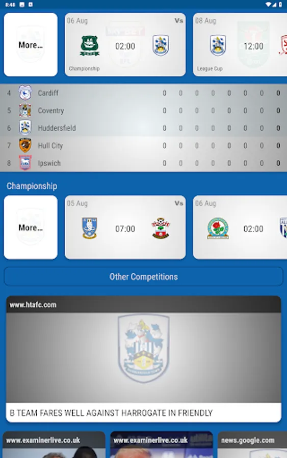 On match day there are regularly updating live scores from the Huddersfield Town match and across the country. With all the latest fixtures and league standings, you'll never need another football supporters app again!