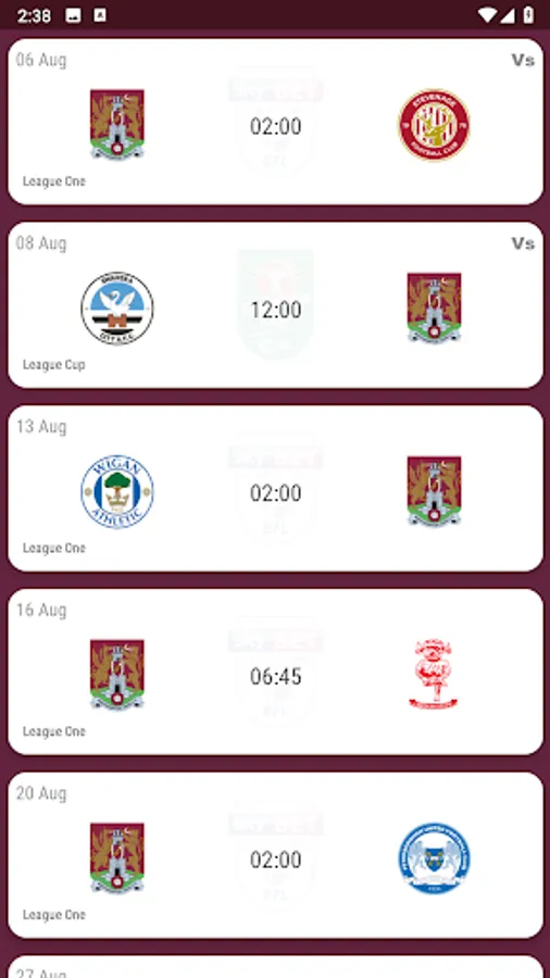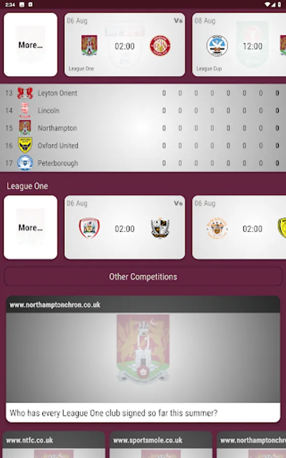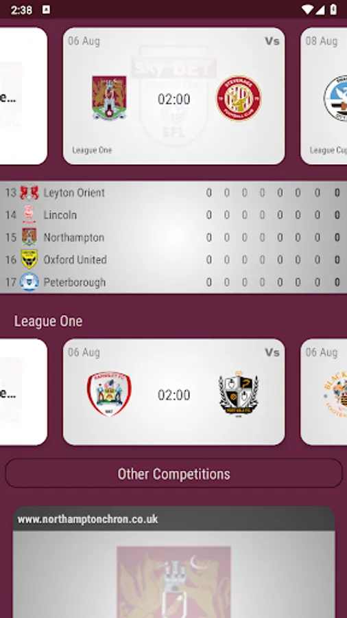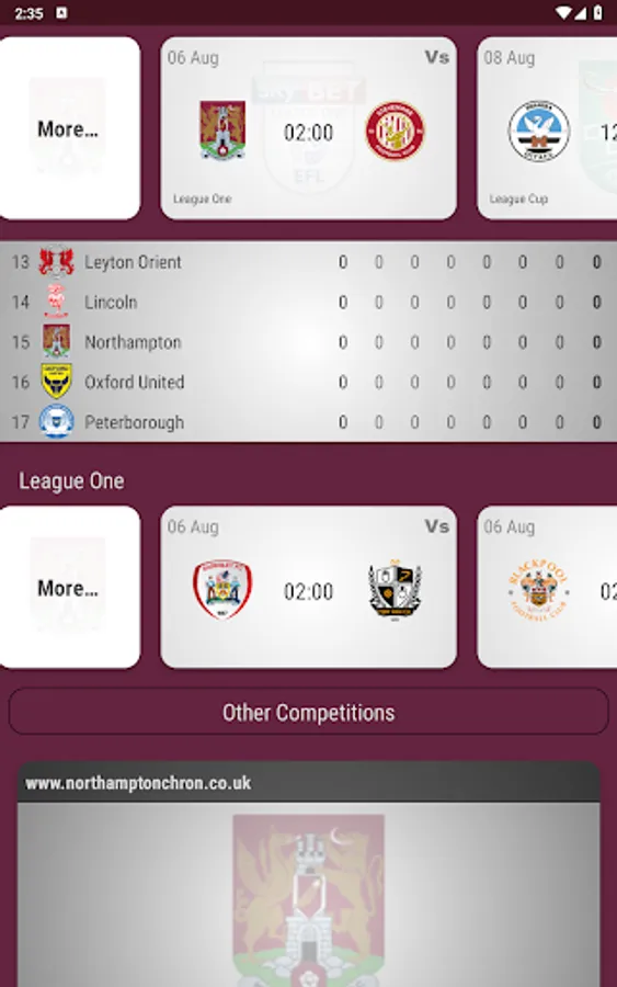 On match day there are regularly updating live scores from the Northampton Town match and across the country. With all the latest fixtures and league standings, you'll never need another football supporters app again!