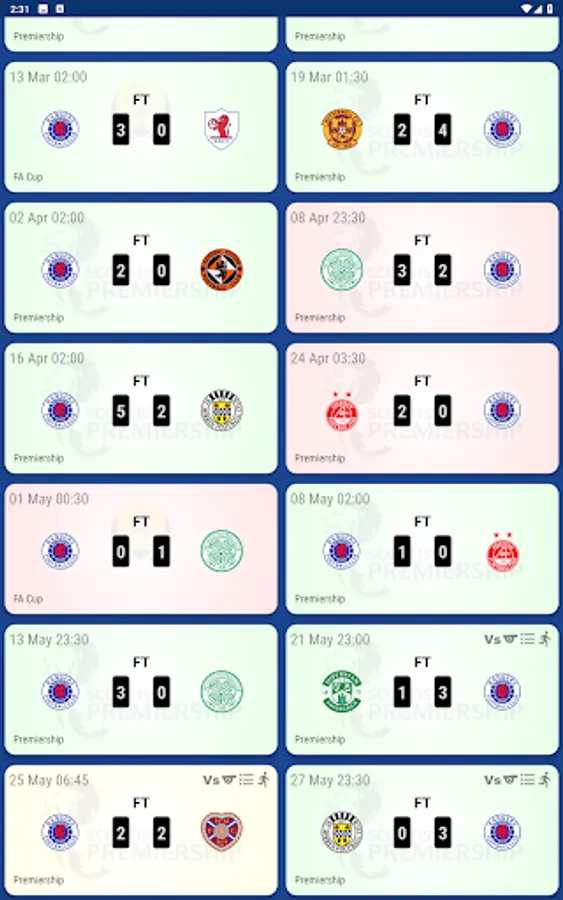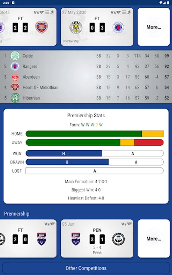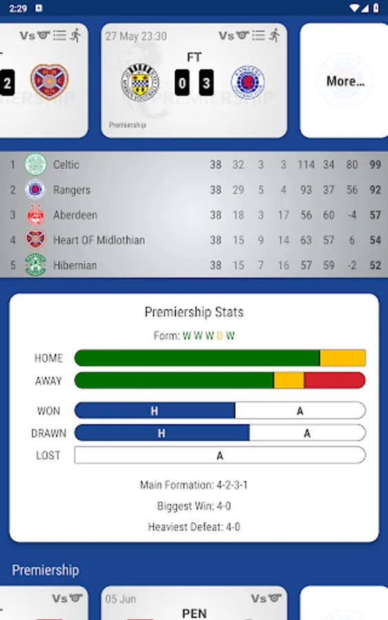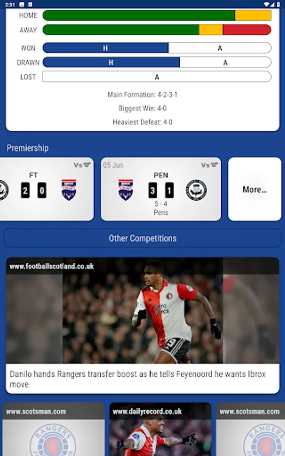 On match day there are regularly updating live scores from the Rangers FC match and across the country. With all the latest fixtures and league standings, you'll never need another football supporters app again!