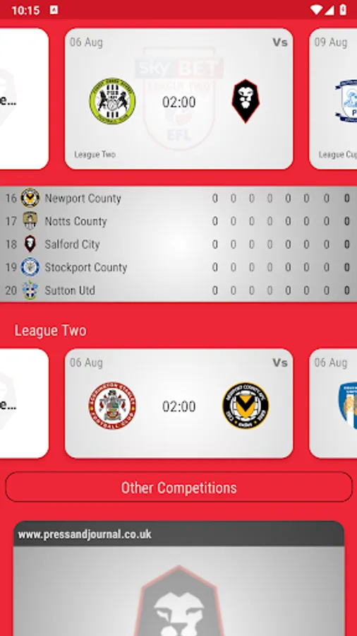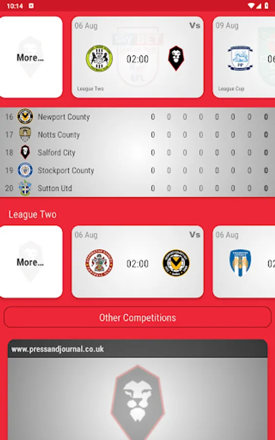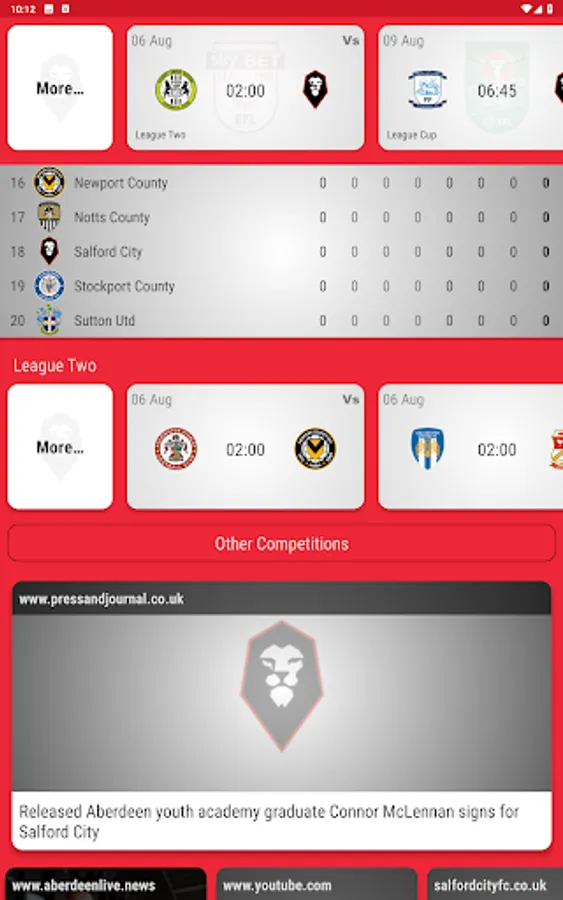 On match day there are regularly updating live scores from the Salford City match and across the country. With all the latest fixtures and league standings, you'll never need another football supporters app again!