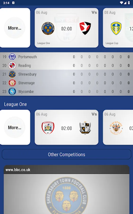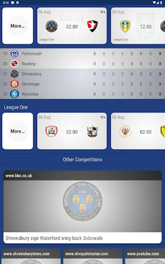 On match day there are regularly updating live scores from the Shrewsbury Town match and across the country. With all the latest fixtures and league standings, you'll never need another football supporters app again!