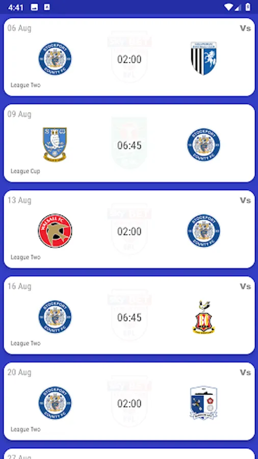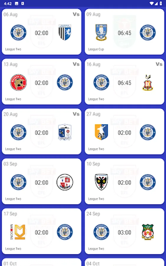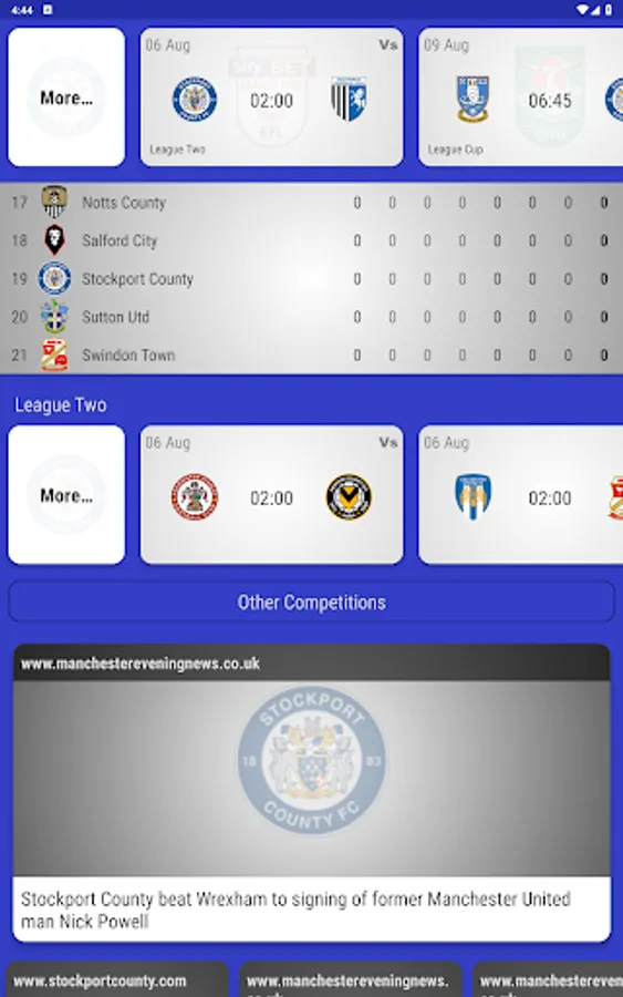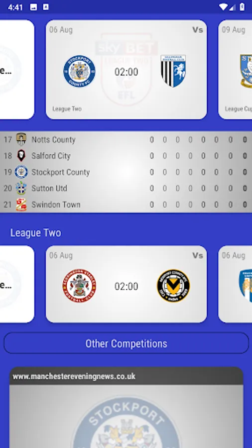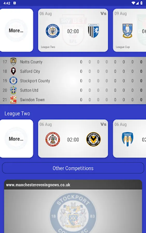 On match day there are regularly updating live scores from the Stockport County match and across the country. With all the latest fixtures and league standings, you'll never need another football supporters app again!
