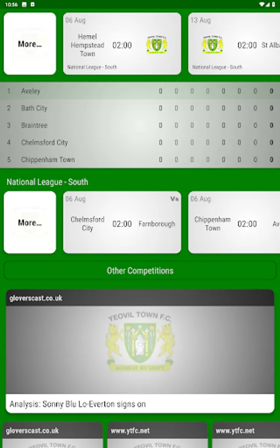 On match day there are regularly updating live scores from the Yeovil Town match and across the country. With all the latest fixtures and league standings, you'll never need another football supporters app again!
