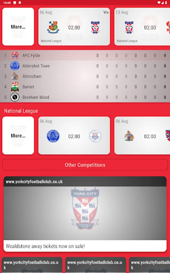 On match day there are regularly updating live scores from the York City match and across the country. With all the latest fixtures and league standings, you'll never need another football supporters app again!