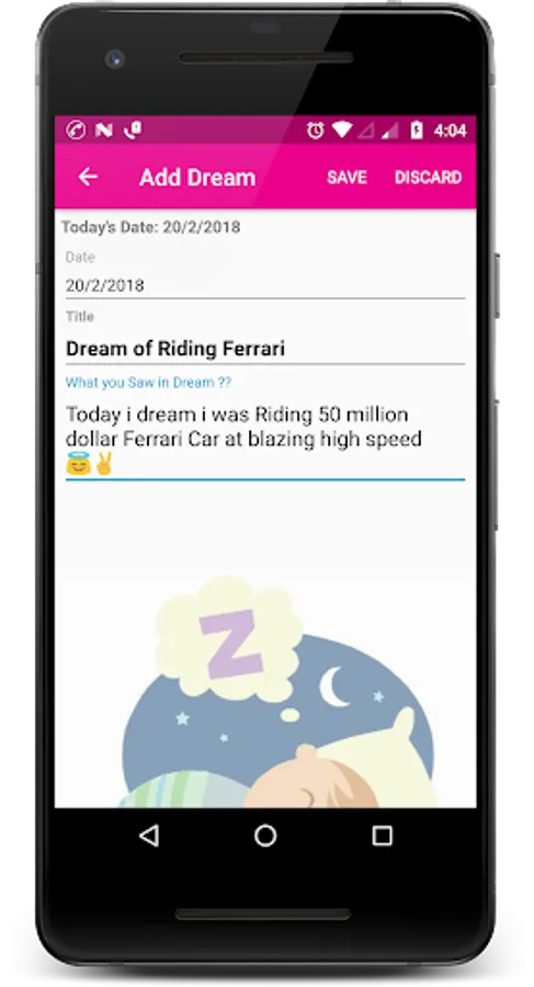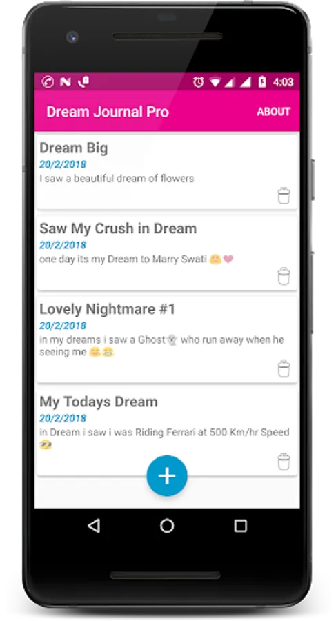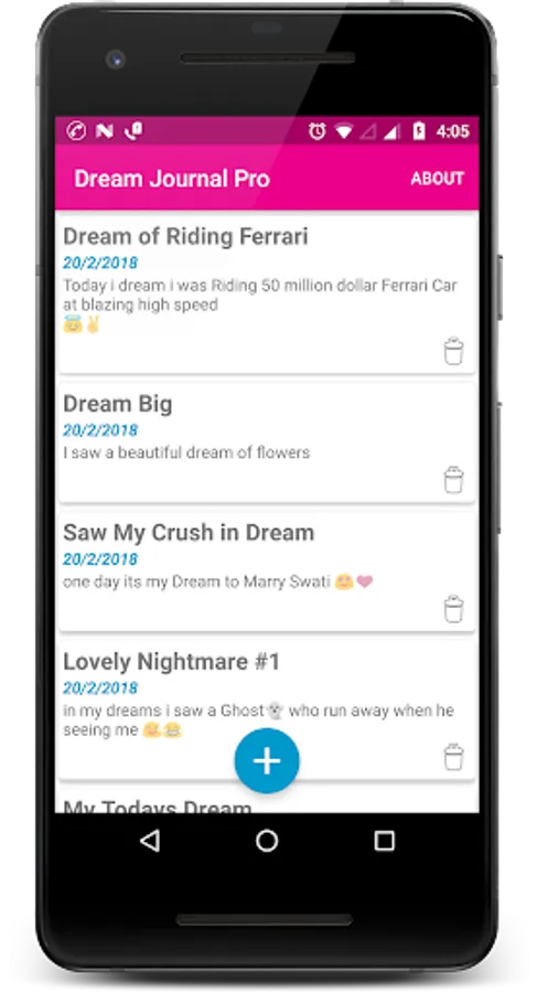 Dream Journal is simple app maintain a Record Data for your Dreams (& Nightmares). Every morning wake & write your dreams before you forget it.